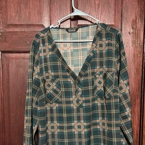 New without tags!Grey and Green plaid plus size blouse. Womens size 18-20. It has a lot of stretch.