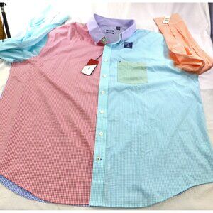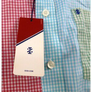 NWT Izod Colorblock Gingham Button Down Shirt Preppy Casual Summer Mens 4XL