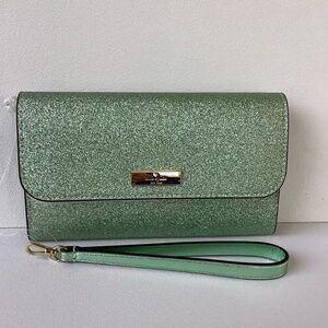 Kate Spade Kenzie Boxed Glitter Medium Flap Phone Wristlet Seawater Ocean KJ007