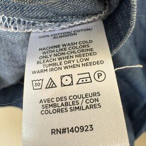 The LOFT Denim Shirt for women in size medium is a popover blouse top with a strappy back design and short sleeves, perfect for a casual or travel occasion. Made of lightweight cotton denim fabric in a solid blue color, this relaxed fit blouse features a round neckline. It is suitable for all seasons, including summer, fall, and spring, making it a versatile and classic addition to your wardrobe. The brand "LOFT" ensures quality and style, and this top is machine washable for easy care.