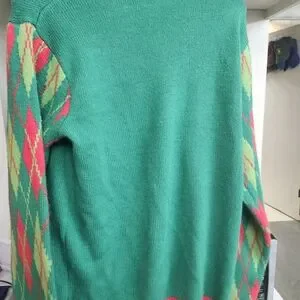 Celebrate the holidays with this fun green dinosaur Christmas sweater. Perfect for adding a playful touch to your festive wardrobe.
