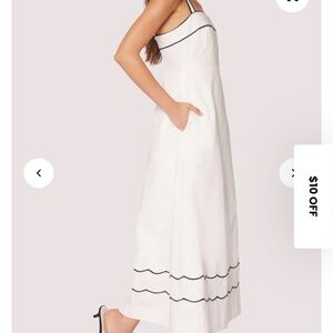 Style this maxi with your favorite statement necklace and sandals for the perfect look. Embrace effortless elegance with the Hamptons Haze Maxi Dress by LOST + WANDER, a statement piece for your engagement events. This sleeveless, A-line silhouette dress features a chic squareneck in a minimalist solid off white/navy, perfect for Thanksgiving and spring occasions. Crafted from breathable cotton, it boasts practical pockets and a convenient pull-on closure. For maintenance, simply hand wash and line dry to keep it looking pristine.