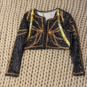 This is a new Rumi costume. It comes in the original package. I’ll ship next day, and it should arrive by Halloween!! I ordered 2 sizes for my daughter, and she prefers the bigger one. This should fit a girl sizes 6-8 well. Fyi the top does show a bit of tummy.