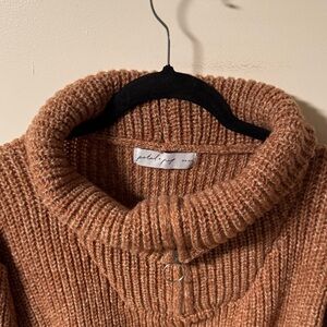 Chic cowl neck sweater with a zip-up front. Soft and cozy knit fabric. Ideal for cozy layering. Such an awesome winter time color rusty brown with speckles of oatmeal. It’s the perfect cropped pairing with jeans or leggings. Pet and smoke free home. Reasonable offers considered.