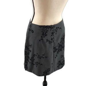I. L. U. FROM THE CLOTHING COMPANY Women’s Vintage Dark Gray w/Black Velvety Embroidered Floral Design Mini Skirt.