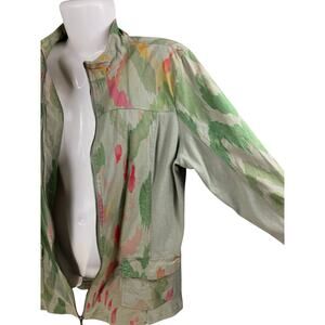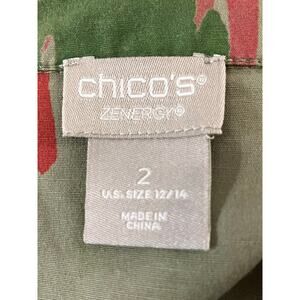 Chico's Zenergy Women's Green Abstract Full Zip Roll Slv Pocket Jacket SZ 2 US L