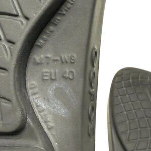 In excellent preowned condition, no stains, holes or defects. Smoke and pet free home. OOfoam Recovery Technology absorbs 37% more impact than traditional footwear foam, giving your feet the break they need. Our patented footbed will cradle your arches to reduce stress on sore feet, ankles, knees, and lower back. Designed to allow natural motion and relief. Keeping things easy, OOFOS are machine washable. OOFOS are made in whole sizes. We recommend sizing down if you're a men's half size