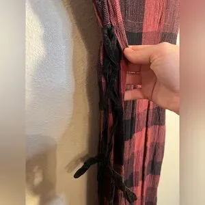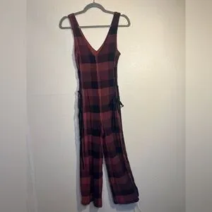 Anthropologie Ett:twa Buffalo Plaid Check Wide-leg Jumpsuit, size 4. Lace up side. Red & black check crepe buffalo plaid material. Red is a rust red color.