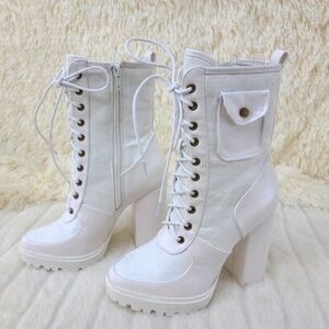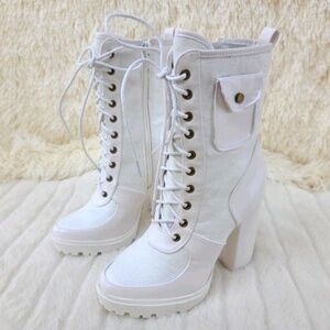 * Mata Shoes White 4" Chunky Heel Booties