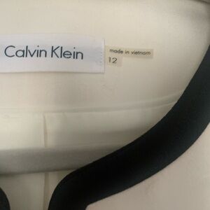 Sophisticated Calvin Klein blazer. Cream with striking black accents. Ideal for professional settings.