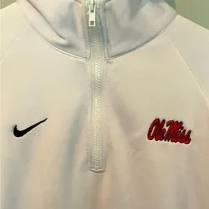 Nike 1/4 zip pullover hoodie with red embroidered Ole Miss logo and black Nike logo. Size large. Good used condition - no defects or damage.