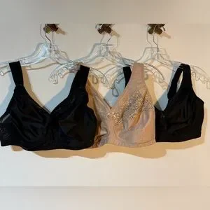 Glamorise Lace Bras - lot of 3 size 40D no underwire 2 black lace and 1 tan bra
