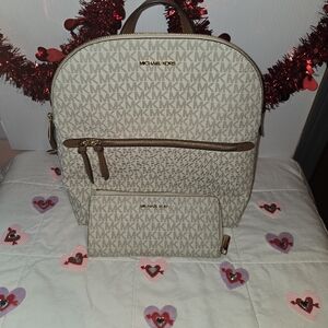 Michael Kors Beige and Brown Woman Backpack With Wallet