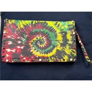 Vibrant tie-dye design with bold stud accents. Perfect for adding flair to any outfit.