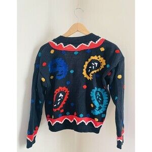 Amazing vintage 80s /90s cardigan sweater by Chaus Petites in a bright, bold southwestern style paisley print! Hand knit and exceptional details. Various fabric textures and colors making it one of a kind. Made of a cotton and acrylic blend. Giving it some weight to keep you warm.