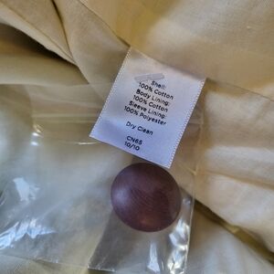 - blazer has hidden wooden buttons, rounded neckline, and 3/4 length sleeves