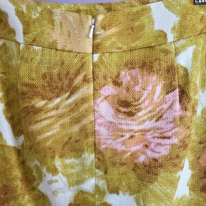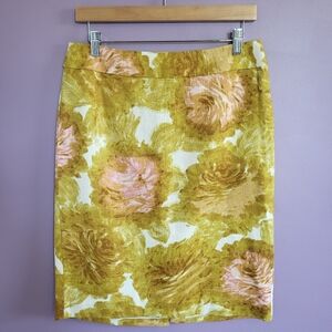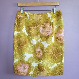 NWOT Size 6 Talbots Mustard & Pink Rose Woven Cotton Canvas 2 Piece Blazer Skirt Suit