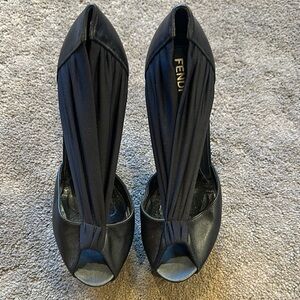 Fendi Women's Black Peep-Toe Shoes - Authentic