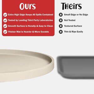 EFFECTIVE: Super high and thick outer lip keeps all spilled food and water splashes contained on the pet food mat and away from your floor. Silicone is naturally 100% waterproof. Clean lines and multiple color options allows it to blend seamlessly with any d cor.