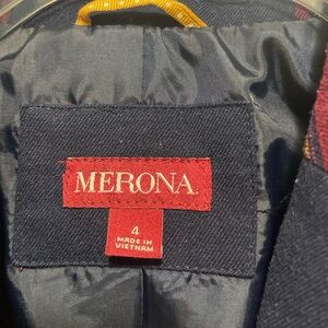 Stylish Merona plaid blazer in navy blue with a red windowpane pattern — a timeless and versatile piece that adds polish to any outfit!