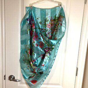Women's Teal Square Floral Neck Scarf Butterflies Flowers Luxury Accessories