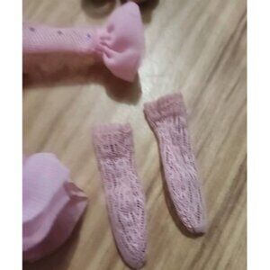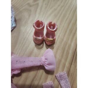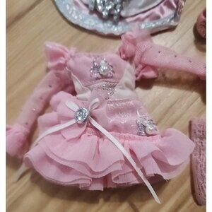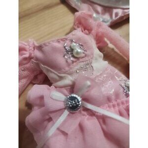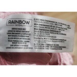 The Bella Parker Rainbow High Heels and Spider embellished Dress in pink is an original clothing item designed for girl fashion dolls. Made of cloth material, this dress features lace details and a tight fit to flare ruffles. With a high heel shoes to match design, this outfit adds a touch of elegance and style to the doll's wardrobe, perfect for creative play and fashion doll enthusiasts looking for unique and trendy dresses. Comes with pink witches hat with RH rhinestones embellishments. See pictures for condition and design details.