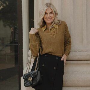 This is the Cabi Monroe Pullover sweater in the color Dijon from the 2024 Fall collection and originally priced at $145.