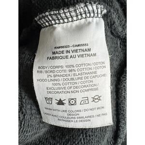 The product is a Jordan x DJ Khaled We The Best Off Noir Black (Dark Grey) Hoodie in men's medium size. This Nike streetwear hoodie features a graphic print with the collaboration theme, long sleeves, drawstring closure, and a hood. Made of cotton fleece material, this heavyweight pullover hoodie is machine washable and has pockets for convenience. Perfect for men looking for a stylish and comfortable addition to their activewear collection.