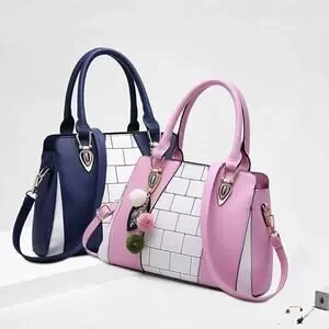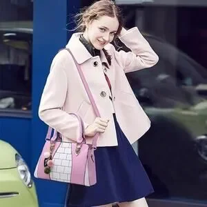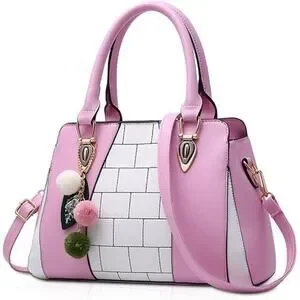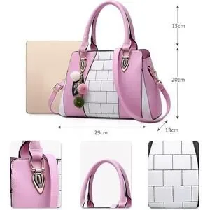 pink plaid fur ball pendant large capacity handbag