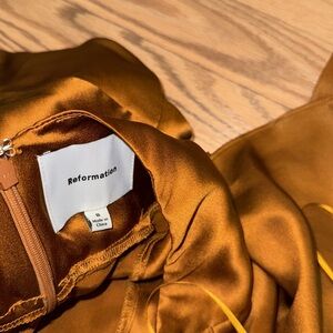 Reformation Daniela 100% silk copper maxi halter gown dress wedding fall size 8