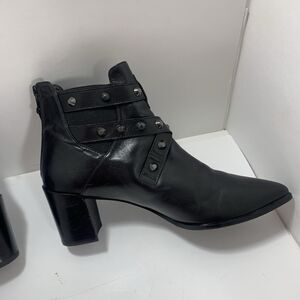 Stuart Weitzman Black Leather Studded Strap Bootcamp Ankle Stacked Heel Boots Size 9. Great preowned condition with normal wear. Please see pictures for over all quality.