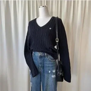 Chaps 100% Cotton cable knit V-neck sweater size Large.