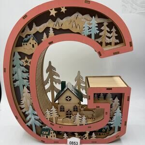 Anthropologie Wonderland Scene Monogram Initial Letter G Christmas Holiday light
