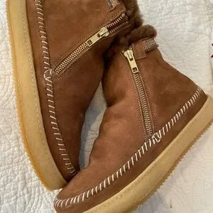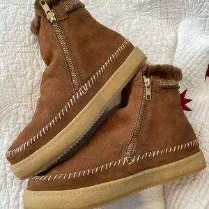 Step out in style with these chic brown suede ankle boots. Featuring a cozy fur lining, they offer both warmth and elegance. Perfect for any casual outing.The most comfortable shoe ever. I own 4 pairs, but this was a color I don’t wear. NW box