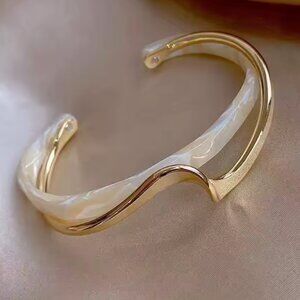 14K Gold Filled White Marble Bangle Bracelet