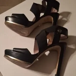 MK elegant black 5" high heel sandals perfect for any occasion, Stylish and comfortable, straps across front is elastic, these shoes are a must-have in your wardrobe.