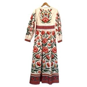 FARM Rio Ainika Delicate Off-White Floral Print Maxi Dress. In "Delicate Off-White" -- a cream base color, with red & green floral botanical accents. NWT.