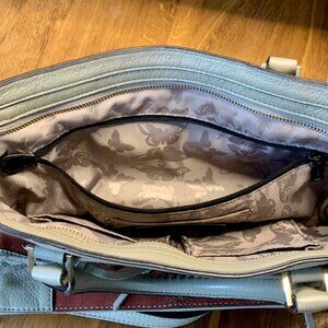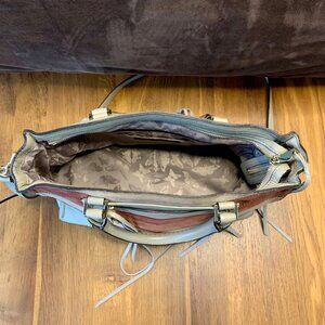 REBECCA MINKOFF Colorblock Chevron Satchel Big Regan Handbag Leather Purse Bag