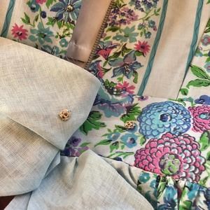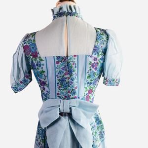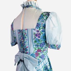 Vintage 60s Cari Lyn Prairie Dress Blue Floral Garden Cottagecore Maxi