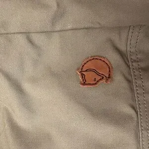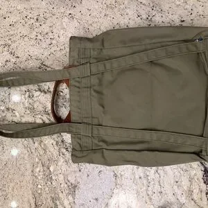 Stylish olive green messenger tote bag by Fjallraven. Pockets inside and outside. Leather handles.