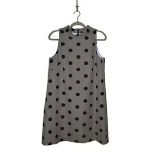 TAHARI ASL $128 Black White Polka Dot Sleeveless A-Line Dress Size 8