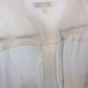 Elegant cream silk blouse. Features button-down front. Two chest pockets. Classic collar design.