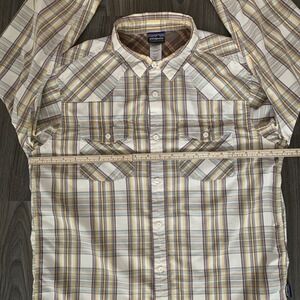 Patagonia Organic Cotton Tan Plaid Button Up Long Sleeve Men's M Double Pocket
