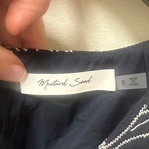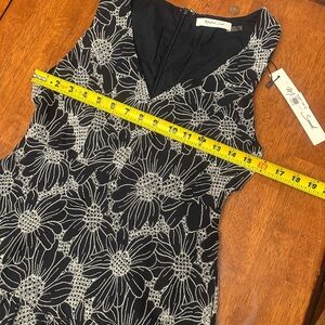Stunning new-with-tags Mustard Seed dress featuring a black base with delicate white floral lace detailing. Flattering V-neckline, sleeveless cut, and a tiered ruffle hem that gives it the perfect feminine, flowy shape. Fully lined and great quality — perfect for date night, events, or holiday parties.