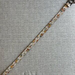 Patricia Nash Vietri Leather Belt Mini Meadows Floral Print Ivory Small NWT