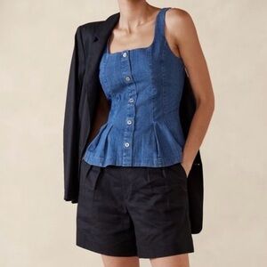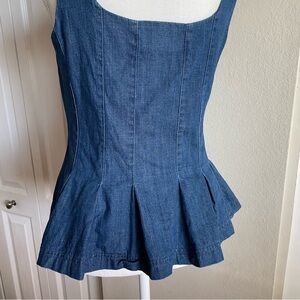 Banana Republic Denim Button Bustier Top Women’s 6 Blue Med Wash Pleated Cottage