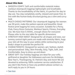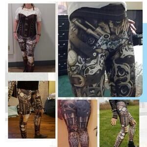 Super cute leggings I bought for my daughter to wear to a steampunk convention! She only worn them a couple of times, no flaws that I could find.