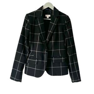 Merona Paid Blazer. Shell 70% polyester 25% rayon 3% wool 2% spandex lining 100% polyester machine wash cold.excellent condition