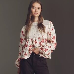 Anthropologie The Iris Long-Sleeve Lace Poplin Blouse by En Elly Small Floral