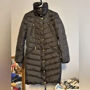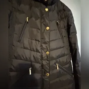 Michael Kors Women's Long Puffer Coat Size small black with gold see pics*